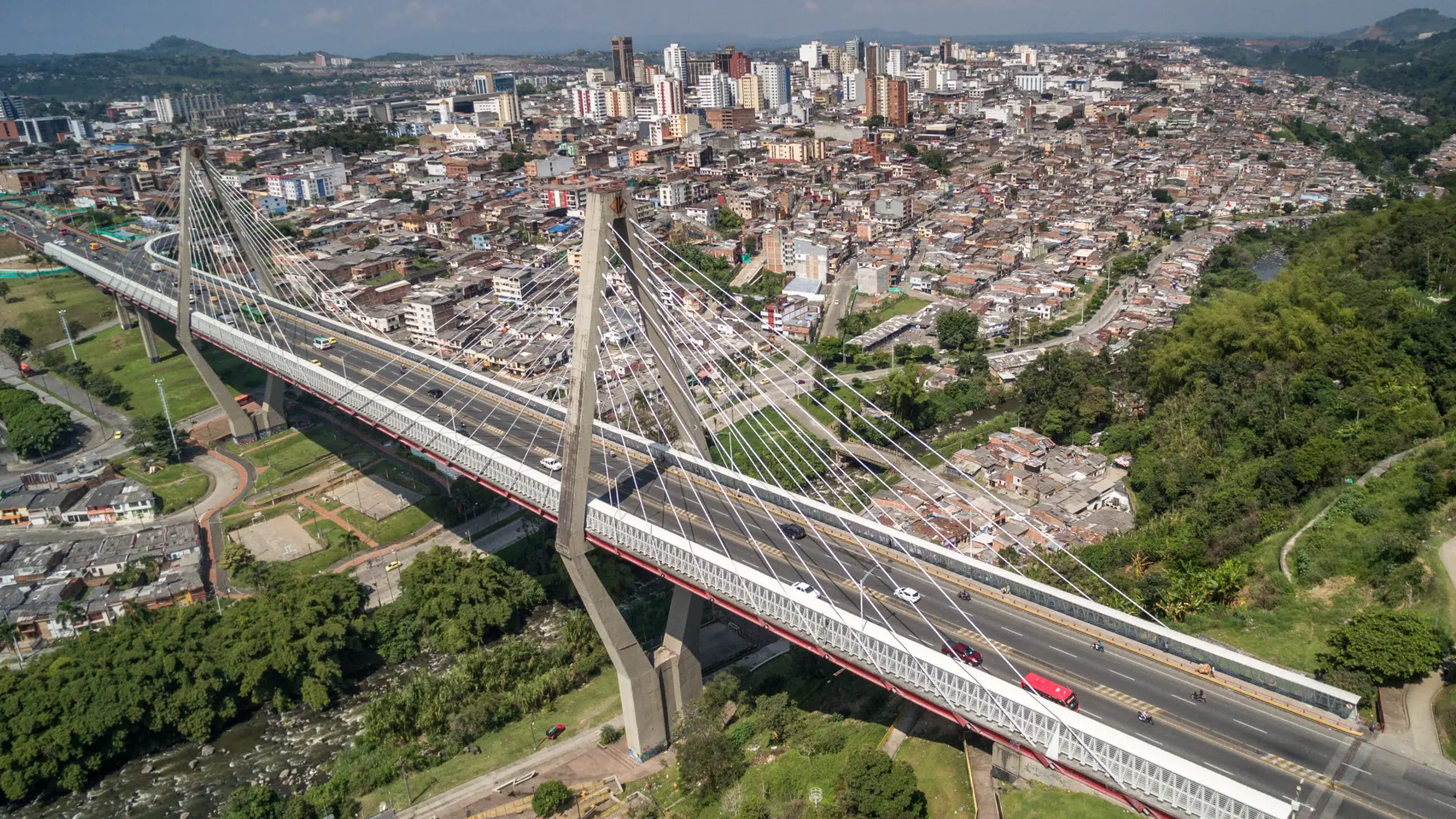 Un viaje aéreo que revela las montañas y el movimiento urbano de Pereira.